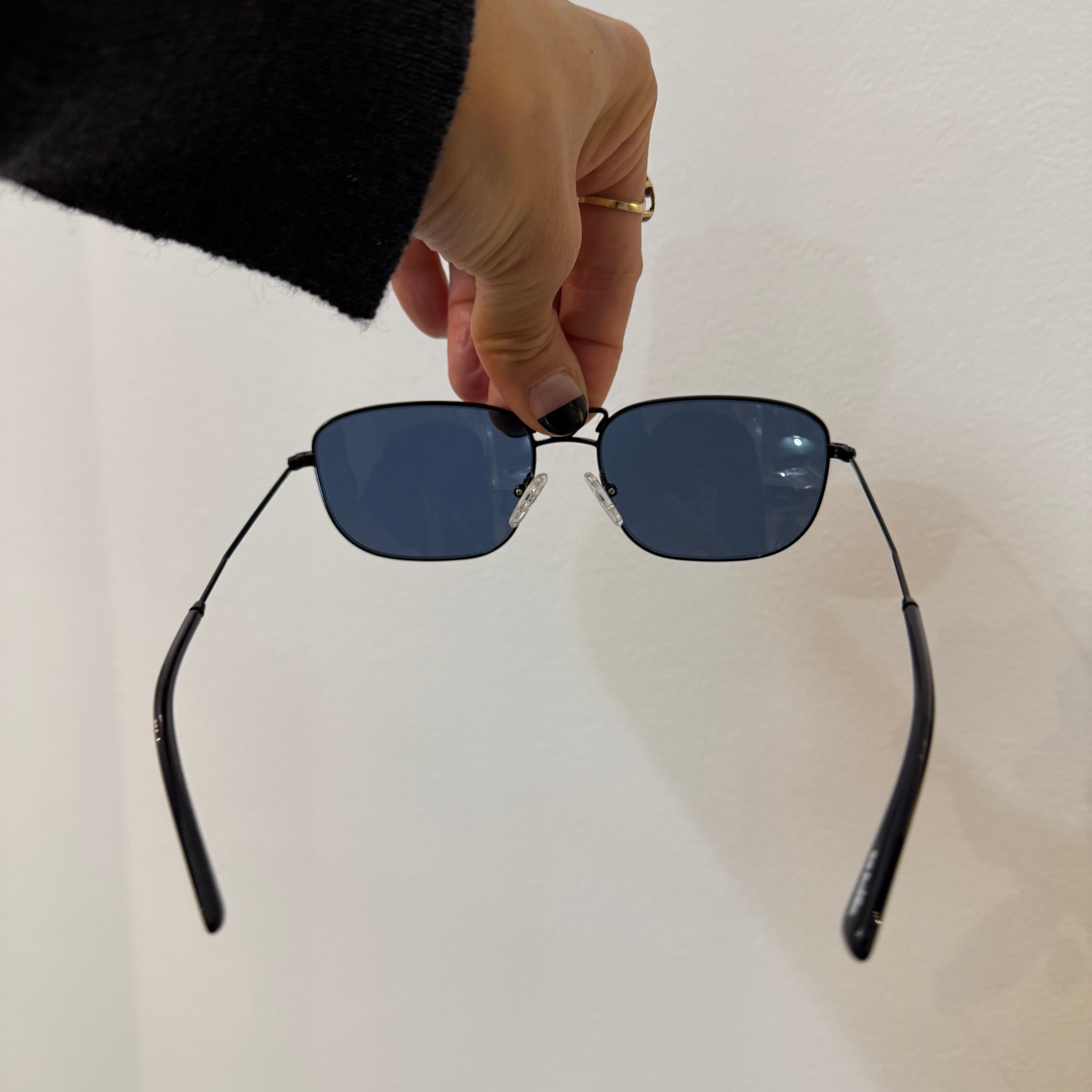 ブラックのフレームに青のレンズですが