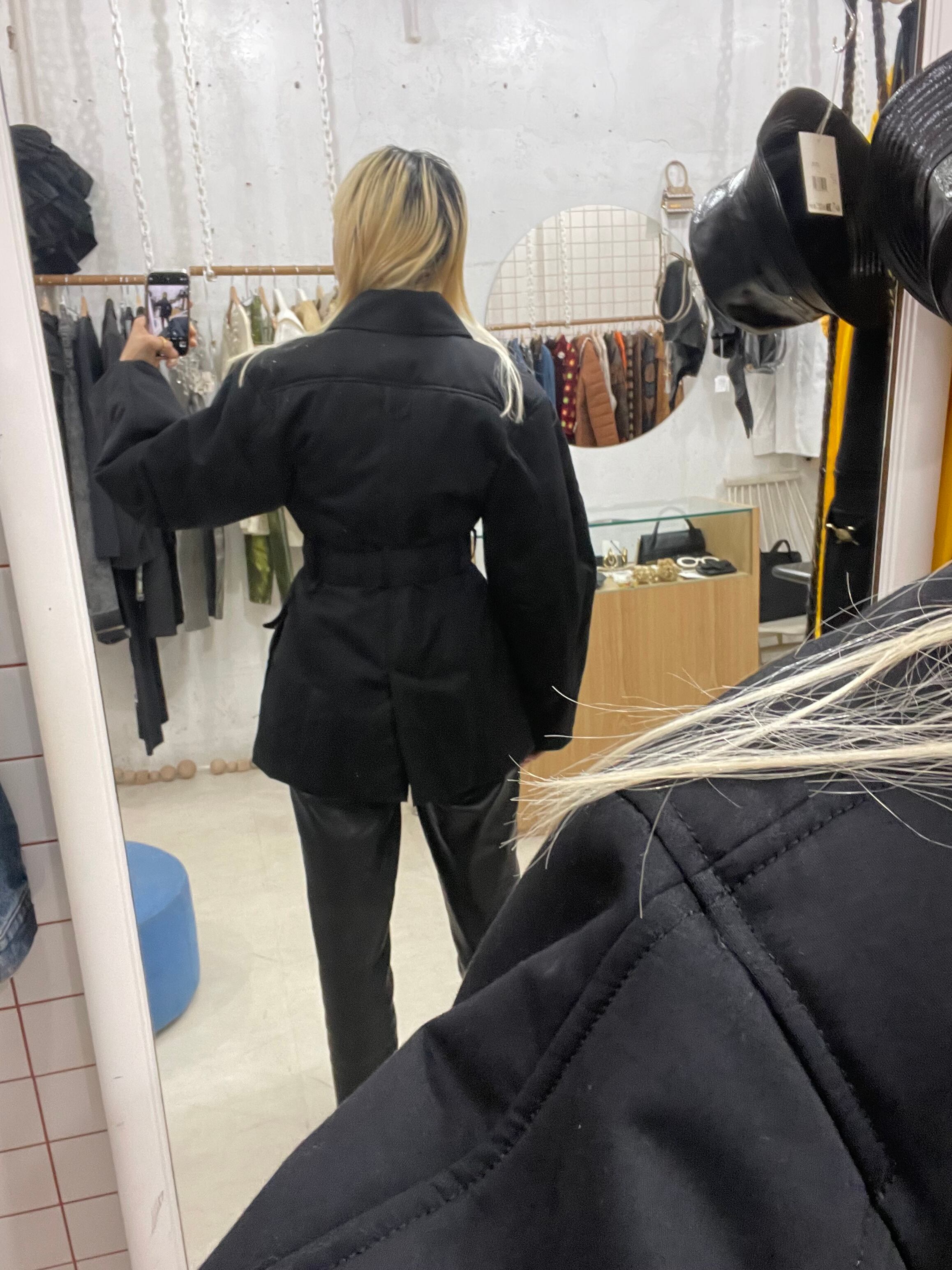 肩周りのラウンドとウエストのシェイプが素晴らしいアウターです。
